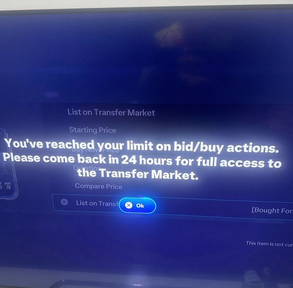 Out of nowhere I got this ban, it says I’ve reached my limit on bidding and buying actions even though I can still do these type of actions. I went to ea support and they told me to wait 24 hours, those hours passed by the way and it still shows me this ban shown in the photo. The screen in the photo only shows when I try to sell players. So far ea help has been useless for me, I tried submitting an appeal no one answered and now I can’t even get help at all, because it says “This issue isn’t supported by advisors”. So now ea forums is my only hope, please fix this. To the community managers, I can give you all the case numbers to show you 24 hours have passed.
