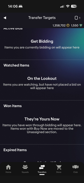 I bid on 8 gold players last night and won them, but when I try to assign them, I repeatedly get the error "Connecting to Ultimate Team is not possible at the moment. You will now be returned to the main menu." I am only able to see the players on console: