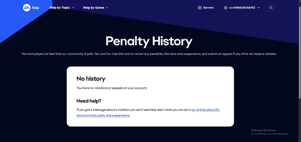 My account shows NO ban