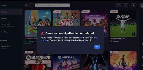 I contacted EA support earlier, and they initially asked me to wait. I replied to them, but since then I have not received any further response.