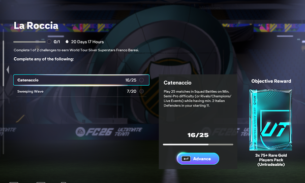 MadfangNewcomer38 minutes agoover 30 games with italian defenders but no progress at allI cant seem to get it done. Changed 3 different italian defenders to get the objective done but its stuck. Same thing with cam striker (kept scoring but stuck at 17)