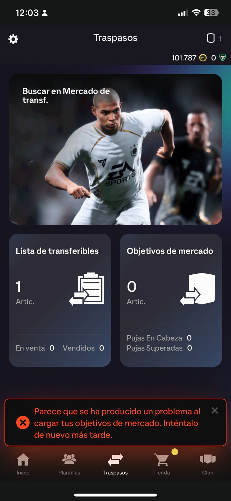 I cannot access Transfer Market at all. Getting three different errors: