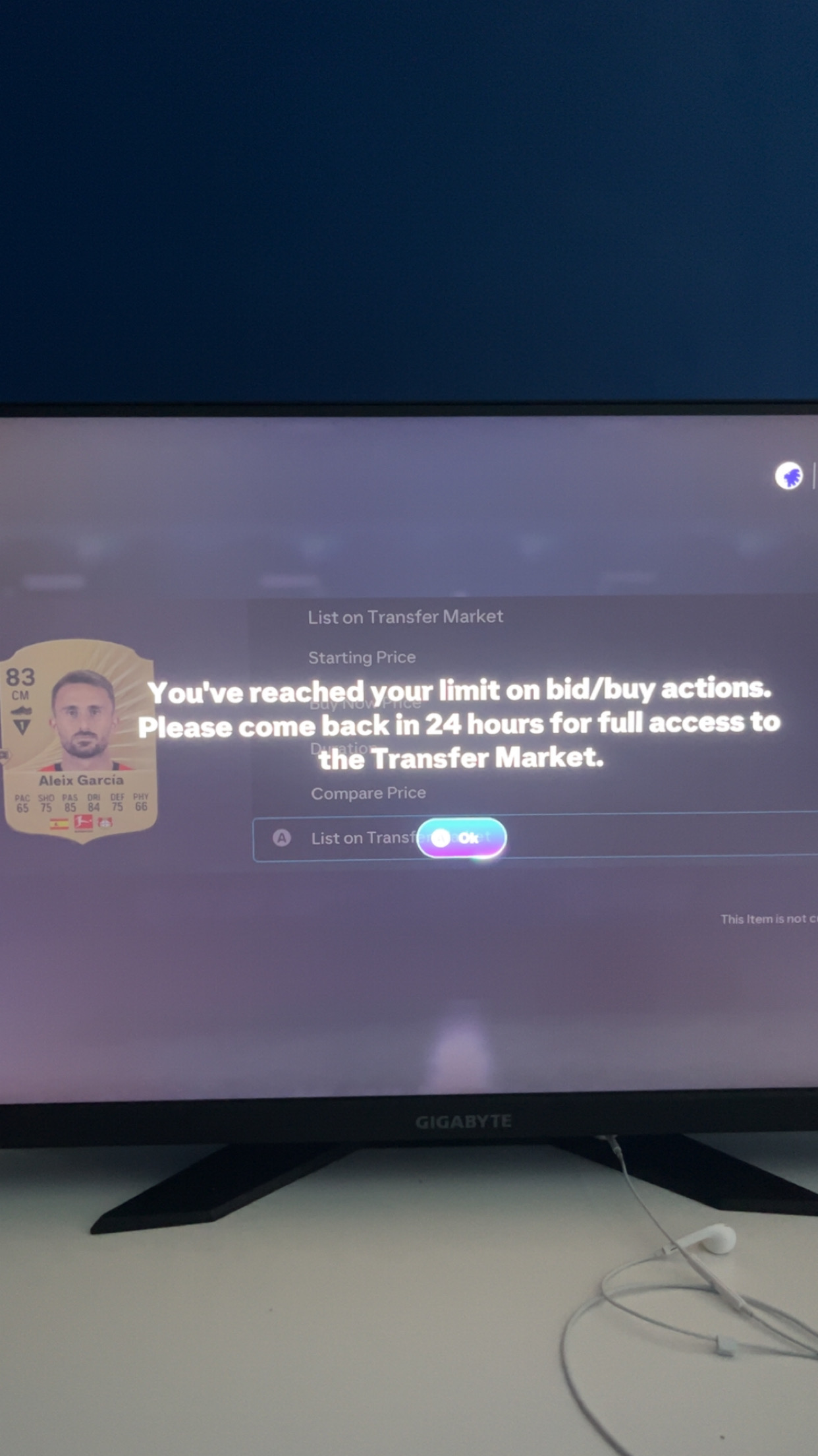 • Attempting to sell triggers the message: “You’ve reached your limit on bid/buy actions. Please come back in 24 hours for full access.”