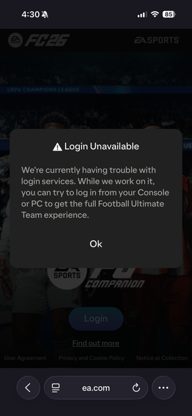 Since I downloaded FC26, it hasn't let me enter the web app on any device. I have investigated by various means and apparently no one else has this problem.