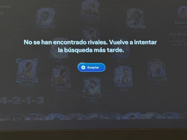 De forma reiterada, al intentar acceder a distintos modos de juego, aparece el mensaje: “No se han encontrado rivales. Vuelve a intentar la búsqueda más tarde.” Este problema no es puntual, sino frecuente, lo que impide jugar con normalidad.