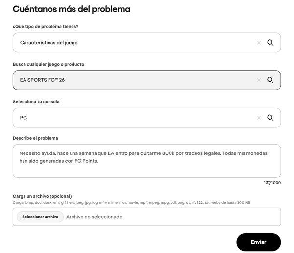 No puedo entender que un servicio de atención al cliente se haya convertido en un chat ( no lo veo mal canal de comunciación con los consumidores ) que se "bloquea" y no puedes seguir buscando avances o dar seguimiento al caso. 4 días de una compañia "muda" a un cliente que ha gastado una importante cantidad de dinero en sus servicios!!! Esto es EA en 2025!!!