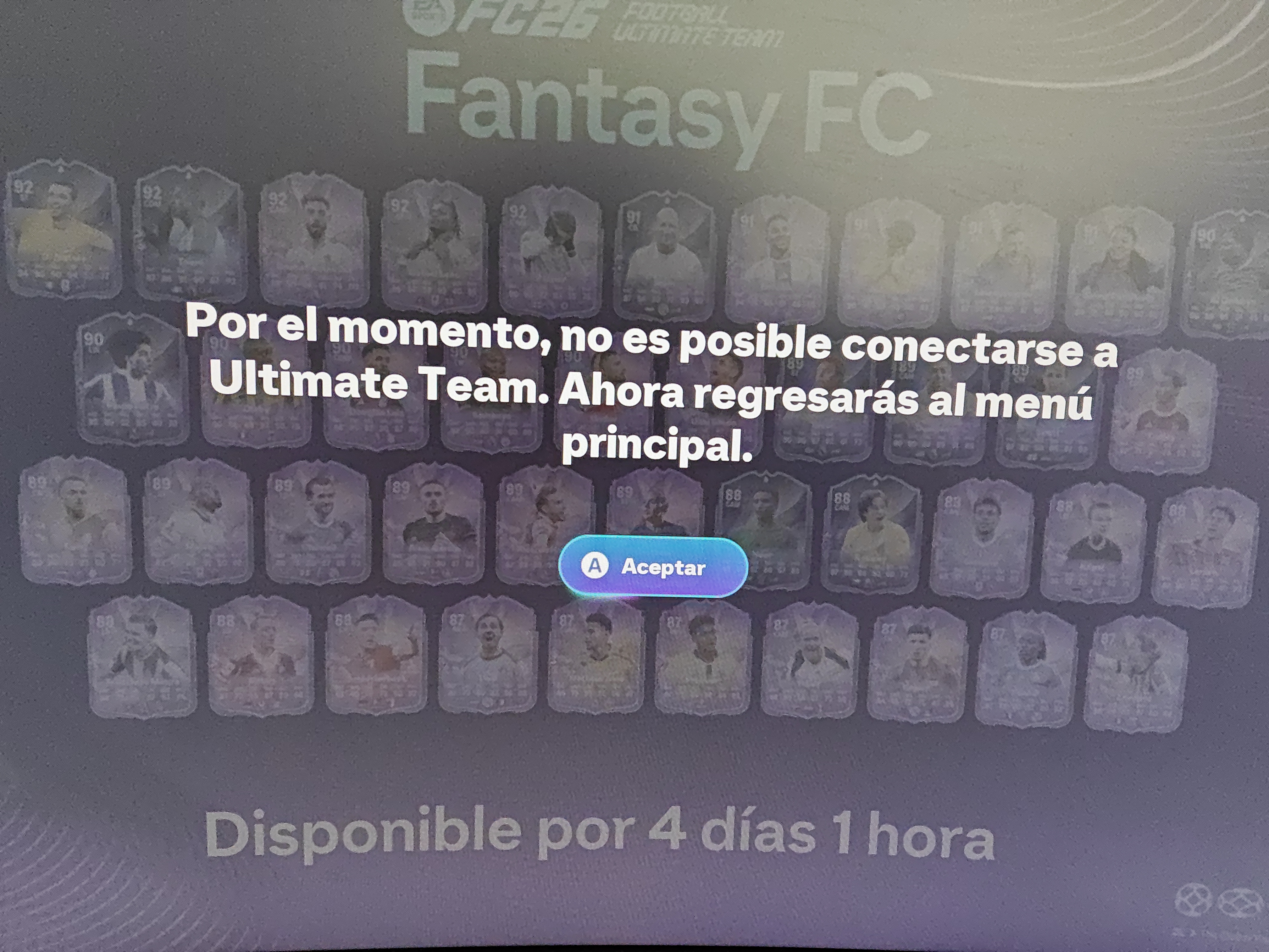 Cuando intento entrar al módem de juego ultimate team me sale la leyenda: "Por el momento, no esta disponible ultimate team. Regresaras al menu principal". Es el único modo de juego al que no me deja entrar.