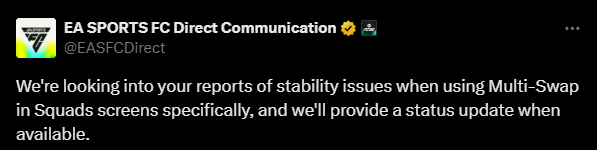 El equipo de FC está al tanto del error y se encuentran investigándolo para tratar de solucionarlo lo antes posible.