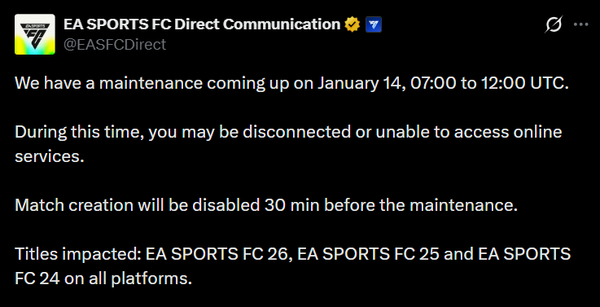 Se trata de un mantenimiento programado de 7:00 a 12:00 UTC.