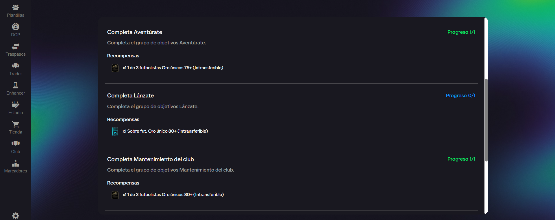 en la sección de objetivos hay un apartado de “Rumbo a Pro” la cual tengo completa totalmente menos el desafío de “Completa Lánzate” .