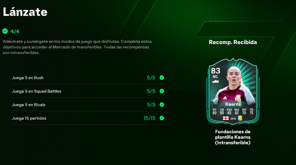 El desafío se ha realizado completamente ya que tengo la jugadora “Kearns” que se daba cómo recompensa al terminar dichos desafíos