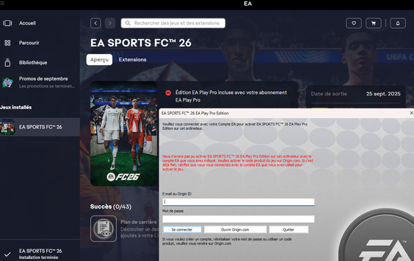 Je suis la démarche et cela ne fonctionne pas : Nous n'avons pas pu activer Votre abonnement FC 26 Pro Edition alors que je suis bien connecter avec le compte ayant le EA Play PRO actif.
