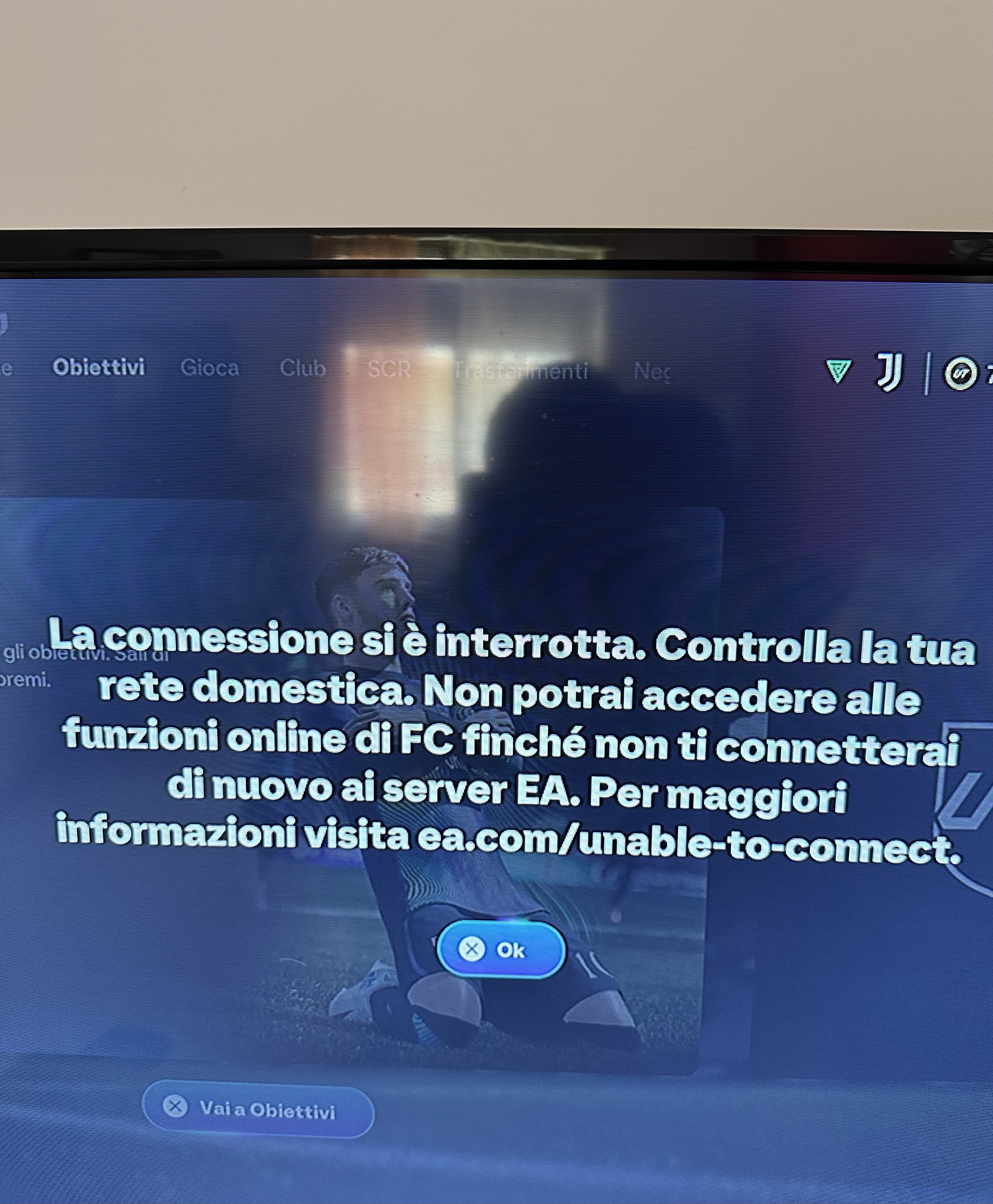 Buon pomeriggio, sto cercando di accedere da circa un’ora (13.30) ma ogni volta che devo effettuare un’azione nel menu di UT mi disconnette e mi dice “la connessione si è interrotta. Controlla la tua rete domestica. Non potrai accedere alle funzioni online di FC finché non ti connetterai di nuovo si server EA.”