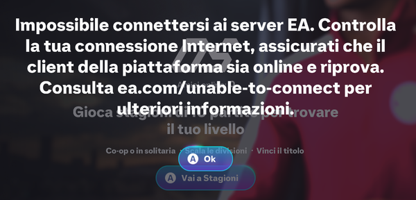 Ciao, sto avendo un problema con FC26 da un paio di settimane. Ad intervalli irregolari mi si disconnette FC26, con un messaggio che lascia intendere che il client ha perso la connessione con il server: