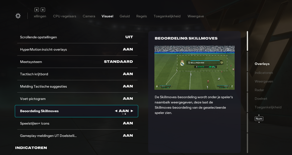 Onder Visueel moet je de instelling Beoordeling Skillmoves aanschakelen. Als je dat doet kan je de versimpelde skillmoves uitschakelen.