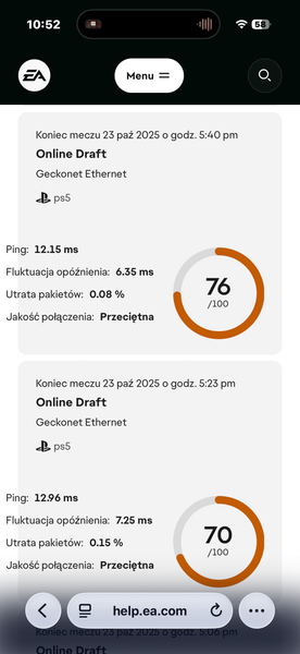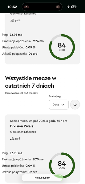 Uzywam kabla posiadam dobry internet dzisiaj byl technik wszystko wymienil i znow problem po 100 pingu i pakiet losow losowo doslownie co 15sek. Gram na ps5 i ten problem jest od ea fc 25 az do teraz.. Prosze o pomoc