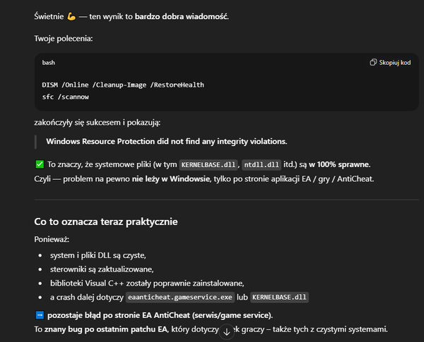 planujecie wydac w koncu jakis patch czy nie srednio mija juz 2 tygodnie odkad ludzie walcza z tym problemem na wlasna reke a wy jedynie co robicie to podajecie dalej mozliwe rozwiazania podane od ludzi. To nie jest normalne ze placac 300zl za gre musze wlaczac naklade discord zeby miec mozliwosc odpalenia gry.Mam nadzieje ze wydacie patch albo dzialajace rozwiazanie w przeciagu nablizszego tygodnia a nie jak w poprzednich odslonach w grudniu.Mam tez nadzieje ze ktos z moderacji odpowie na to a nie bot piszacy regulke kierujaca do rozwiazan innych graczy. Ilość zgłoszeń jest przerażająca a wy nawet nie potraficie napisać że pracujecie na tym. Każdy z graczy ma dość codziennego walczenia z problemem który to wy powinniście rozwiązać i to już przed oficjalna premiera gry. Wiele ludzi zakupilo grę w wersji preorderu i do dziś nie zagrali ani jednej pełnej gry. Zwracam się do was supporcie abyście chociaż odpisali czy trwają prace nad tym problemem czy my jako gracze mamy sobie dać spokój z tą edycja waszej niedopracowanej gry. Mam też prośbę od graczy z tym samym problem o aktywność pod tym postem może ea w końcu się wypowie.