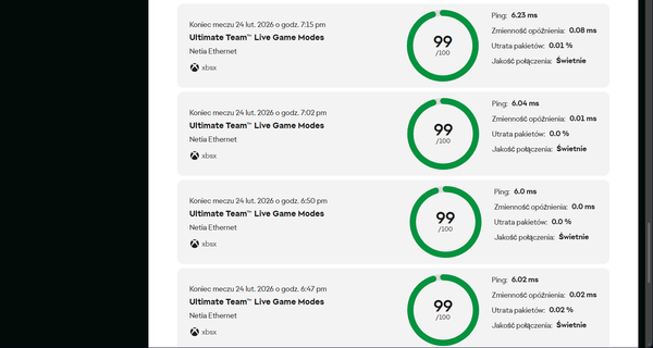 alewaldo74​ Rozumiem frustrację - skaczący ping i jitter potrafią całkowicie zepsuć mecz. Zmiana koloru z zielonego na pomarańczowy i czerwony oznacza niestabilność połączenia - nawet jeśli średni ping nie jest wysoki, to właśnie jitter (wahania opóźnienia) powoduje te „mikro-teleporty” i opóźnienia reakcji.