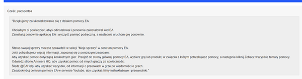 • Mam to samo niestety , wcześniej gra działała od wczoraj mam problem z jej uruchomieniem... Pojawiają się komunikaty sprawdzanie środowiska gry , sprawdzanie aktualizacji , uruchamianie javelin anticheat. Po sprawdzeniu tego wszystkiego na chwilę pojawia się zminimalizowane okno gry a potem wraca z powrotem do aplikacji EA...
