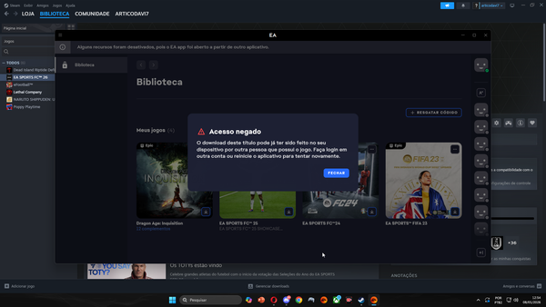 comprei o jogo pela steam e quando inicio ele abre a EA play e da um erro "acesso negado" e o jogo nao aparece na biblioteca da EA