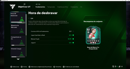 Comprei o EA FC 26 na semana passada, e ao começar a fazer os objetivos do UT, mais especificamente o desafio 'Hora de desbravar' > 'Conclua a EVO de Fundamentos'. Concluí a EVO, mas ao final da part...