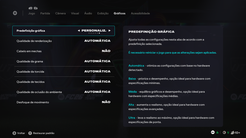 OBS.: ao alterar as configurações do jogo aperte start e reinicie