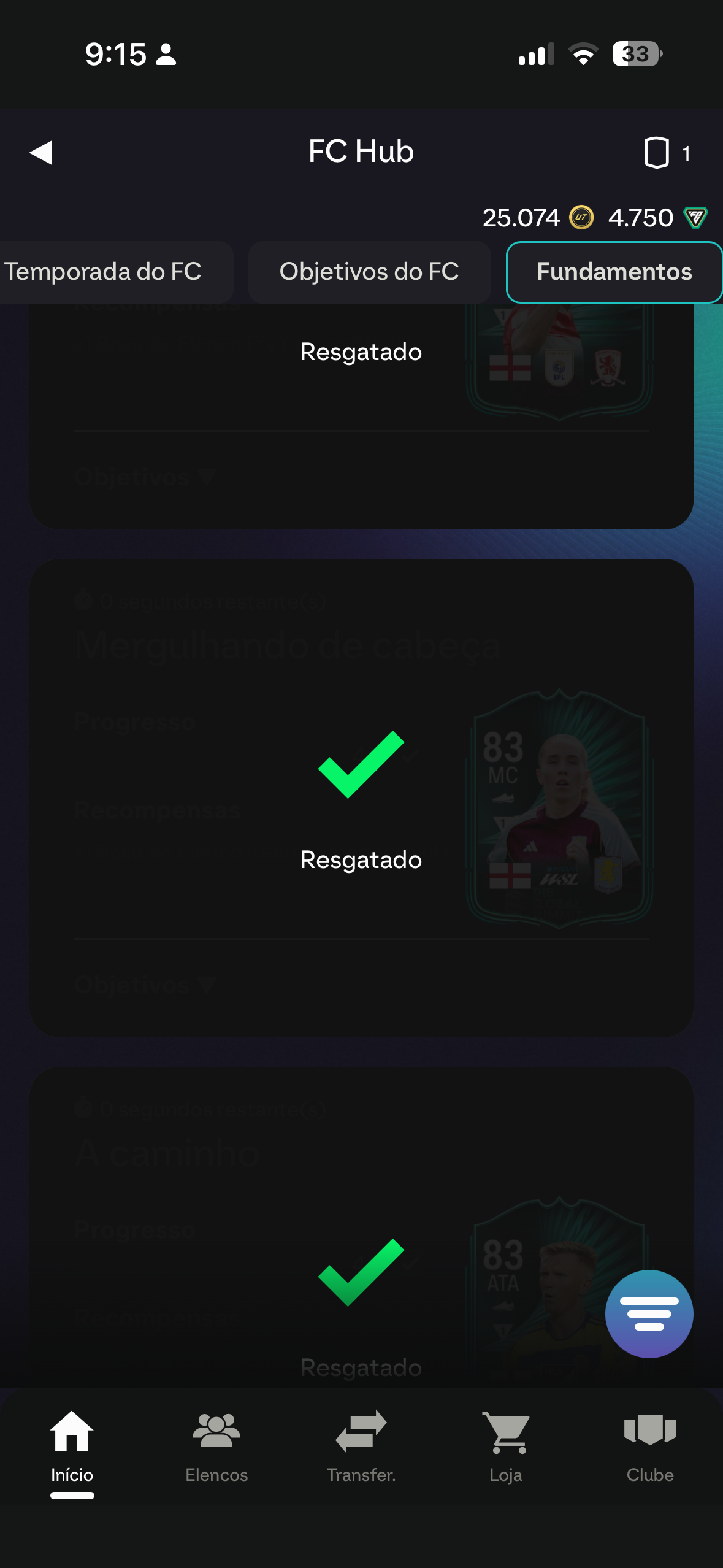 terminei todos os objetivos para finalizar o conjunto virando craque porém não contabilizou no conjunto e não consigo pegar a recompensa.