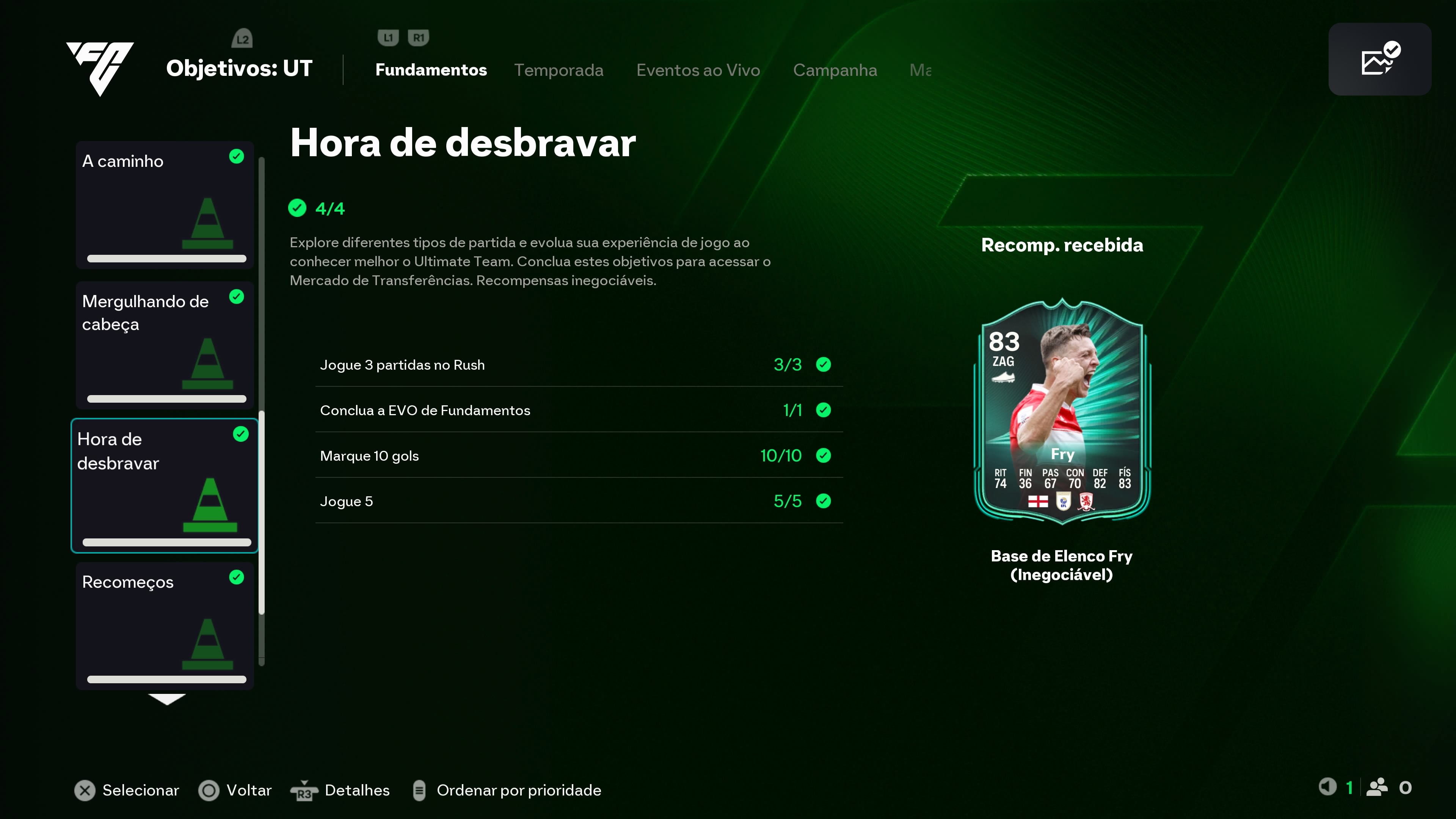Erro no objetivo Virando Craque que não completa