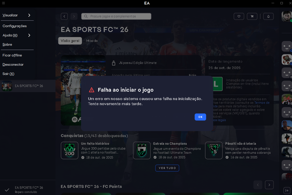 alguem pode me ajudar, ja fiz reparo no jogo, atualizei o driver do processador e ainda assim da esse erro ao entrar no jogo, CONFIG DO PC> RYZEN 55600GT COM 2 PENTE DE 8GB.