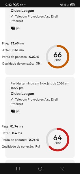 Recentemente comprei o ea fc 26 e sempre gostei de jogar o modo clubs (antigo pro clubs) Ocorre que, diferente dos outros modos o clubs gera bastante lag (ping alto) que não gera nos outros modos, nas imagens, é possível perceber que no relatório o modo division rivals é um ping normal, aceitável, contudo, quando olhamos o ping do modo clubs, o mesmo fica extremamente injogavel.