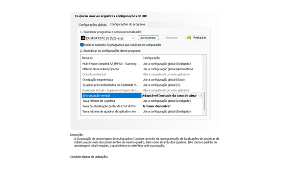 Placa de video ( 591.74) Configurações da placa de video Modo latencia baixa - Ligado ou ultra (tanto faz)