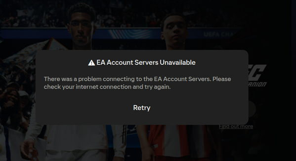 There was a problem connecting to the EA Account Servers. Please check your internet connection and try again.
