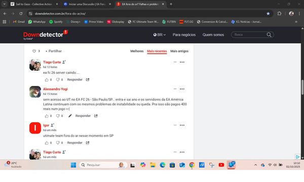 Ontem o servidor da EA caiu durante grande parte da noite e madrugada no Brasil, impossibilanto jogar o Rivals no ÚLTIMO DIA da semana para término dos objetivos + ganho de recompensas. Por que os servidores da EA para o Brasil e América do Sul estão COSTUMEIRAMENTE caindo e deixando os jogadores sem serviço??? É pago um bom dinheiro nos jogos, sem contar o que é consumido em FC Points, vários jogadores pagam EA Play também, para a EA utilizar servidores que SEMPRE dão problema??? Péssimo serviço!