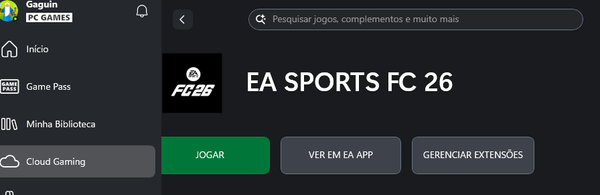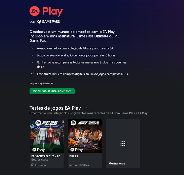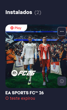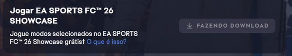 O Xbox App mostra “Jogar”, mas quando abre a EA App, ela está baixando o EA SPORTS FC 26 SHOWCASE (versão de teste), e não a versão completa do Game Pass — por isso aparece depois o erro “O teste expirou”.
