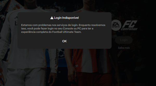 Estou com esse erro na hora de logar no Webapp do meu FC26, OBS: minha assinatura expirou porem o mercado da conta esta liberado e tenho recompensas para resgatar.