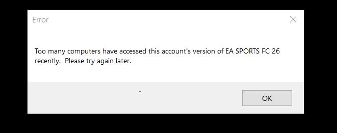 Too many computers have accessed this account's version of EA SPORTS FC 26 recently,