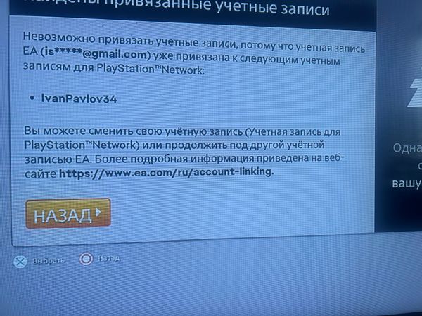 В скриншоте видно, что вы получаете ошибку о том, что ваша учётная запись ЕА уже связана с другим аккаунтом PSN.Проверьте информацию по привязке учётных записей в данной статье.