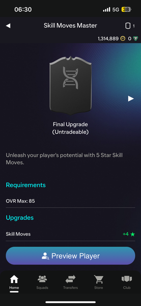 5 Star Skill Move Evo SBC, no mention of 85 rated limit on the app