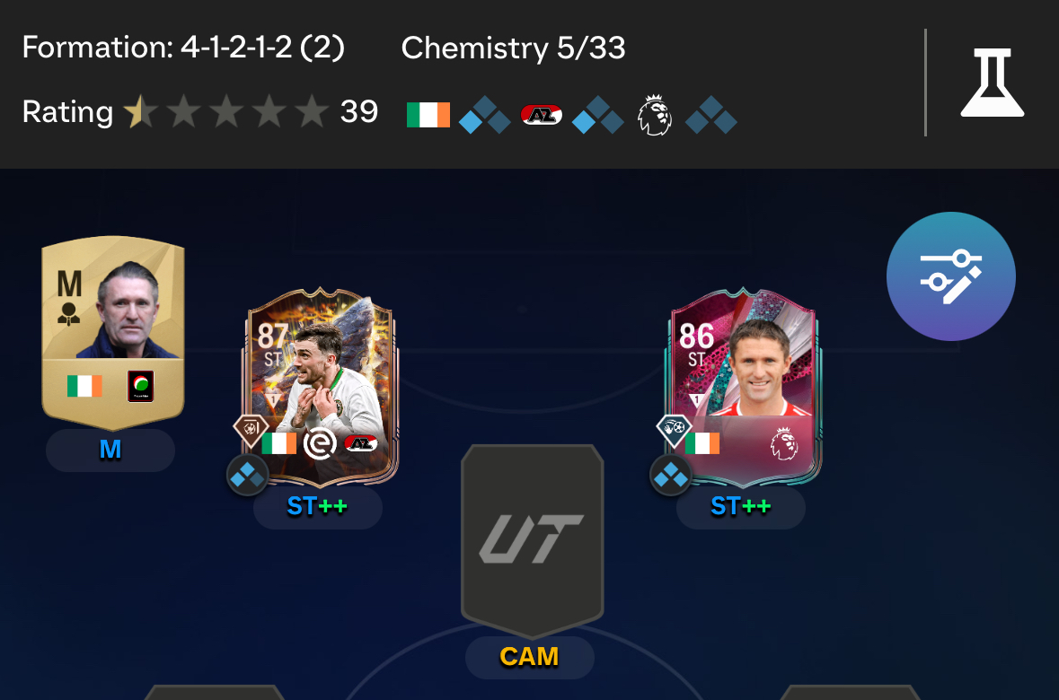 So I put Robbie Keane through the hero cosmetic evo and then the captain cosmetic. He has now lost chemistry links to Irish players. If I put a different irish captain Irish card in it gives the chemistry but Keane does not.