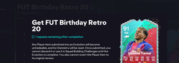 There was no in-game warning informing players that applying this Evolution would permanently remove FUT Birthday PlayStyle eligibility.