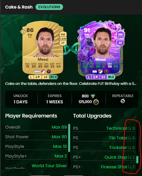 I'll keep it short. Can you first add all 8 playstyles and 2 playstyle+ from the playstyle and the playstyle+ bakery onto a FUT Birthday card, and then upon putting them into the Cake and Rash evolution. Do they get the extra playstyles and playstyle+ from the evolution or does it just get ignored? I actually wanted to do this to the FUT Birthday card, Bahoya.