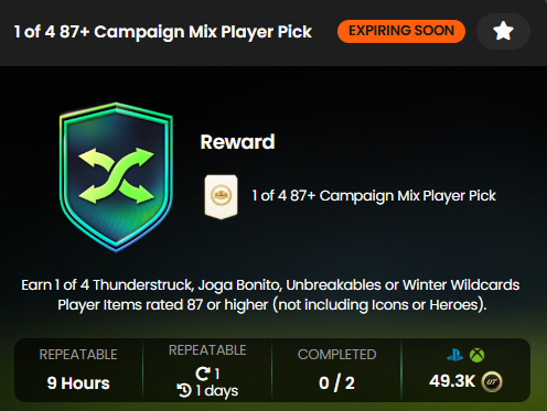 If you received Thunderstuck Endler in 87+ campaign player pick then it is correct one. It does not contain TOTY player items. It contains only specific card types. Refer below image.