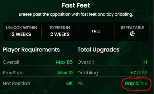 I recently completed the Fast Feet Evo and realized that the base rapid playstyle it was supposed to give, was not listed.
