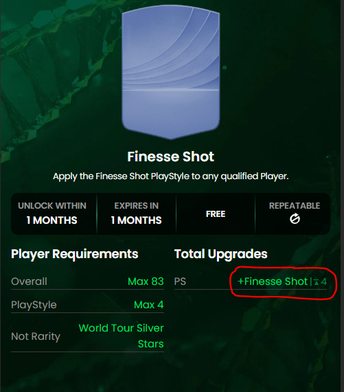 This finesse shot evo also has a max upgrade limit of 4. If your player already has 4 playstyles, then they won't receive a new playstyle. - callumholly673 days agoNewcomer