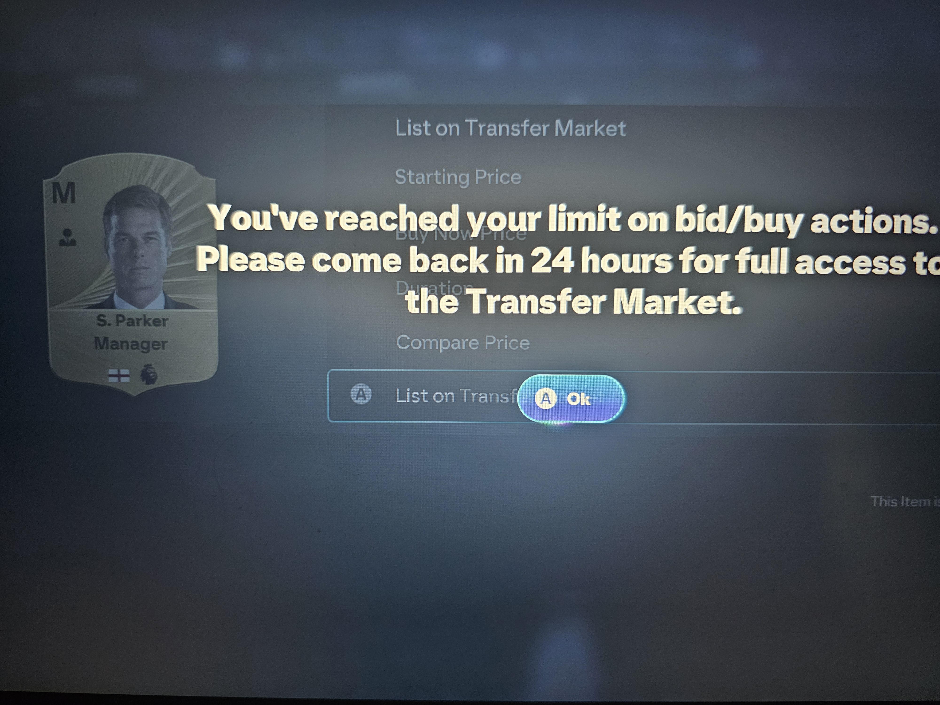 This bug has been going on for over a month I can buy players normally with no issue but when I list them it says come back in 24 hours but problem is the timee doesnt go down ita been a month and when I bid on something I cant enter transfer targets because when I try to enter transfer targets it says there is a problem with ultimate team go back to main menu