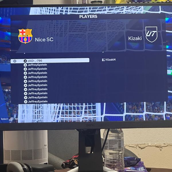 I was playing my games in the worldstar league live event when I came across an opposition who was clearly hacking. When the match started I kicked off but I was unable to control any of my players. Each had a white player arrow on top of them. I was wondering what was happening so I went to check the person I was playing against and below i seen along with my name there was a endless list of “JeffreyEpstein” and on my opponents side it was just him. Please get this guy banned and take a look at the picture along with this post