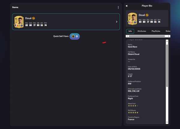 This morning i was opening packs on EAFC and got the Doue version base, 85 rated instead of the 91 rated future stars.