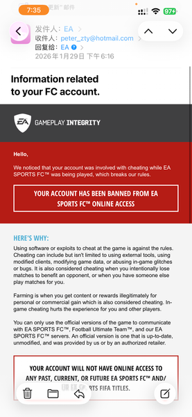 ShanghaiTySeasoned Newcomer1 day agoXbox FC26 Mass “Coin Distribution” Permanent Bans @EAHelp @EA_CommunityTeam Details: • First email: “Terms Violation” • Appeal → second email: “Coin Distribution” • Case status: “Waiting on Studio” → “Declined” • Penalty History: empty after ap...Show More