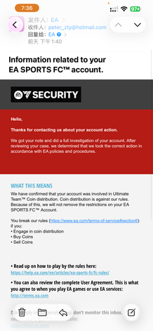 •My friends account(one of my friends, actually we have more than 10 members got banned in this week ) the funny things, He got the yellow ban after the red ban. THE 1ST MAIL ALSO IN THE SAME TIME.