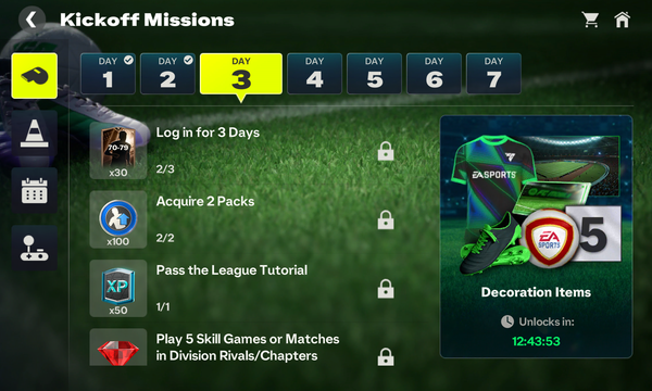 If your account has been registered for less than 7 days the Ballon d’Or mission will not be visible.
